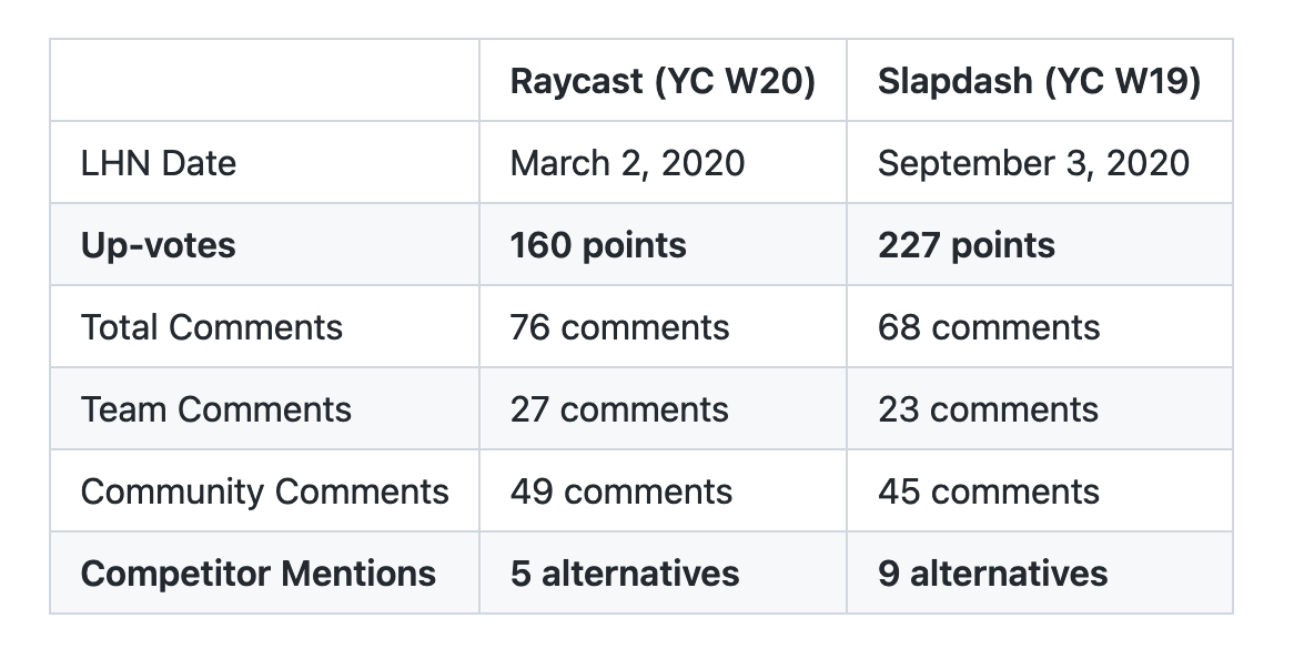 Raycast and Slapdash are two YC funded startups with similar products (and identical business models) inspired by dissimilar ideas. Both startups used a Launch HN post to solicit feedback from the HN community in 2020.