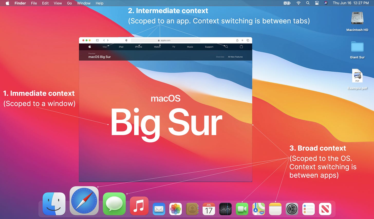 Whereas, workers that depends on several SaaS apps and only a handful of native apps will spend the bulk of their time context switching between browsers tabs (inside the browser).